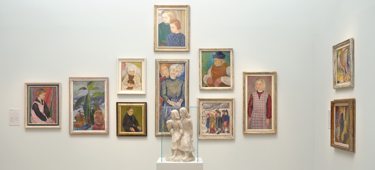 Utställningen bygger på ett omfattande forsknings- och arkivarbete och presenterar målningar, skulpturer, teckningar, fotografier och en dagbok. Verken kretsar kring teman som natur, andlighet och moderskap, där återkommande motiv som Mor och barn speglar både personliga erfarenheter och existentiella frågor.